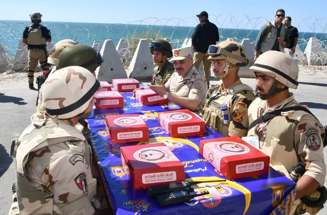 قام الفريق أحمد خليفة، رئيس أركان حرب القوات المسلحة، بمشاركة المقاتلين تناول وجبة الغداء داخل إحدى نقاط خط الحدود الدولية.