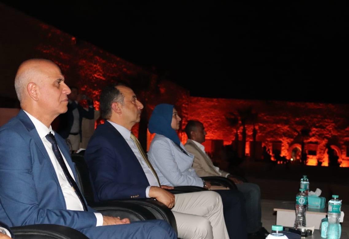 تفقد المهندس محمد شيمي، اللمسات النهائية للمشروع، والأجهزة والمعدات التي تمثل أحدث تكنولوجيا في العروض والإسقاط الضوئي والصوتيات، والتجهيزات التي تمت بالموقع، بالتنسيق مع المجلس الأعلى للآثار، بحضور المحاسب عمرو عطية العضو المنتدب التنفيذي للشركة القابضة.