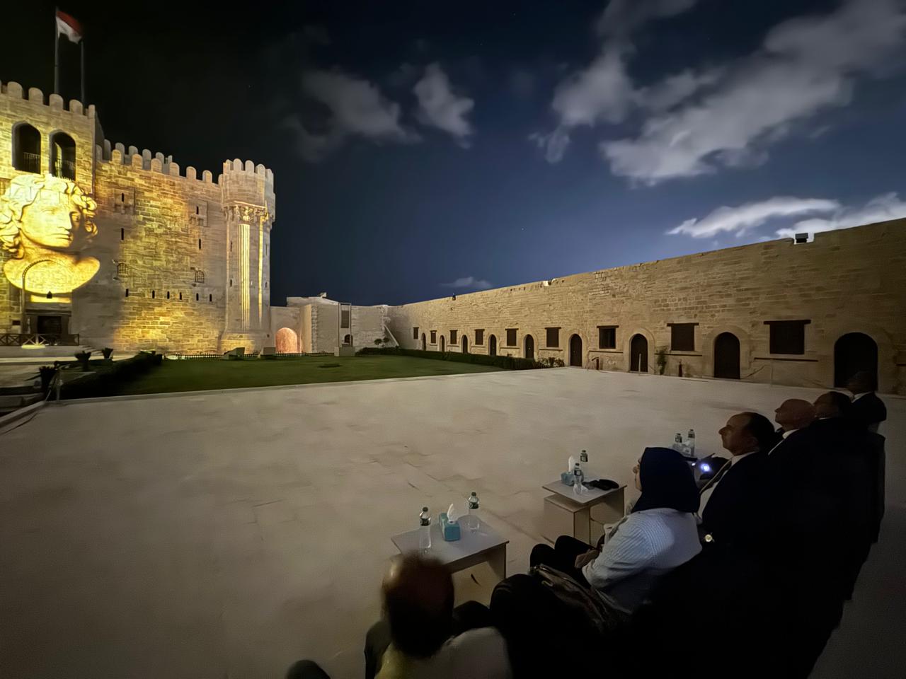 وزير قطاع الأعمال يتابع التشغيل التجريبي لعرض "الصوت والضوء" بقلعة قايتباي بالإسكندرية