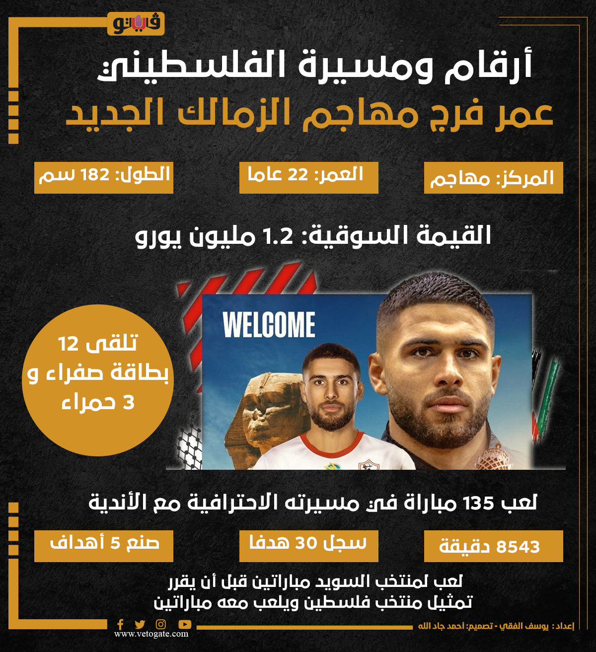 أرقام ومسيرة الفلسطيني عمر فرج مهاجم الزمالك الجديد (إنفوجراف) الخميس 05/سبتمبر/2024 - 10:05 م 9/5/2024 10:05:06 PM عمر فرج يوسف الفقي شارك طباعة 18 حجم الخط شارك طباعة عمر فرج الزمالك نادي الزمالك اخبار الزمالك أرقام عمر فرج من هو عمر فرج
