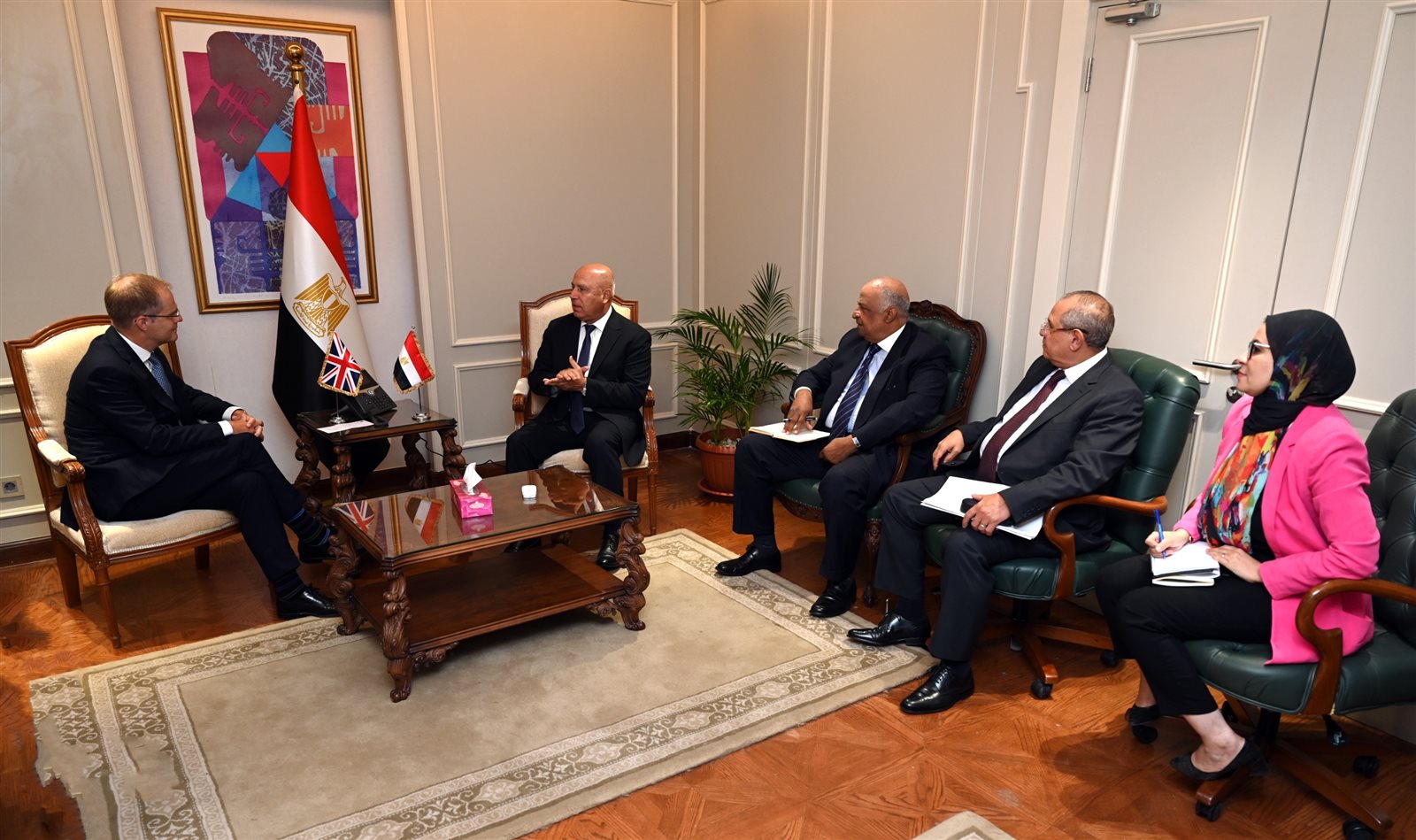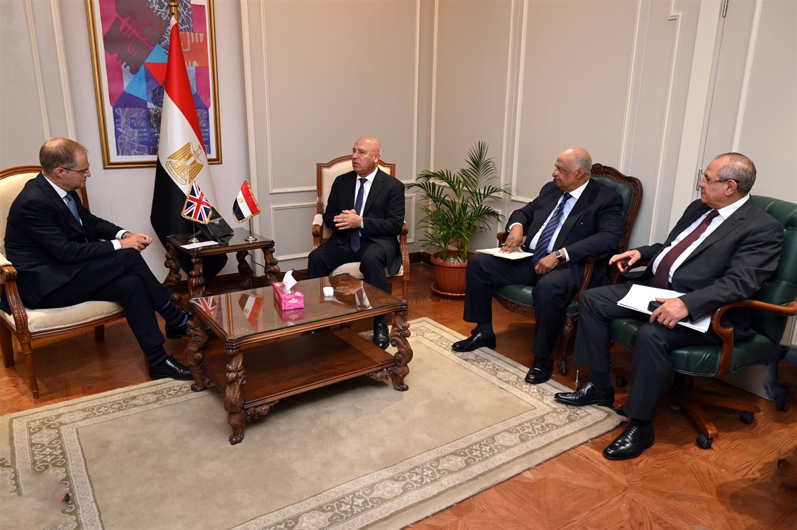 في بداية اللقاء قدم السفير البريطاني بالقاهرة التهنئة للفريق مهندس كامل الوزير على توليه منصب نائب رئيس مجلس الوزراء للتنمية الصناعية وتوليه حقيبة الصناعة إلى جانب حقيبة النقل.