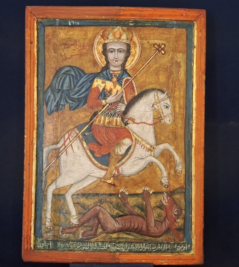 وأوضحت جيهان عاطف مدير عام المتحف القبطي، إن المعرض يهدف إلى إبراز مكانة الشهداء في تاريخ الكنيسة القبطية وتصويرهم على القطع الأثرية المختلفة مثل الأحجار، والنسيج، والأيقونات، والمخطوطات. ويضم المعرض سبعة قطع أثرية من مقتنيات المتحف المميزة لأيقونات لشهداء فرسان مثل أيقونة تصور القديس مارجرجس يمتطي حصانه ممسكا بيده حربه يطعن بها الشيطان، وأيقونة تصور الشهيد بقطر متوج يرتدي الزي العسكرية ويمتطي حصانه الذي يكاد يطأ على الشيطان المصور بشكل تنين وتنسب إلى يوحنا الأرمني وترجع للقرن18 الميلادي.