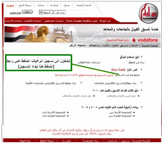 - للدخول إلى تسجيل رغباتك اضغط على رابط "اضغط هنا لبدء التسجيل".