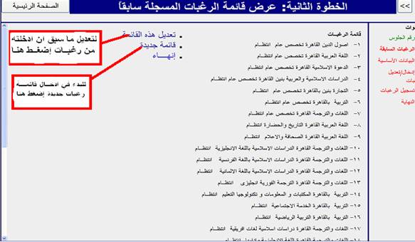 إذا كنت قد تقدمت برغباتك من قبل واردت الدخول لتعديل رغباتك ستظهر له الشاشة التالية