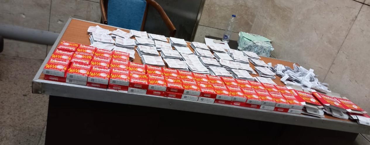 وكانت المحاضر المحررة من رقم ٧٦ وحتى رقم ٩٣ لسنة ٢٠٢٤، حررت الإدارة الأولى برئاسة هاشم مصطفى ومحمود عبد النبي مديري الإدارة وعلاء شحاتة النائب: محضر ضبط جمركي رقم ٧٦ عبارة عن ٥٠ قسطرة طبية، ومحضر ضبط رقم ٧٨ عبارة عن ٢٠ عبوة مخدرات متنوعة ومحضر ضبط رقم ٨١ عبارة عن ٧٥ قسطرة طبية، ومحضر ضبط رقم ٨٩ عبارة عن ٣٦ عبوة أدوية باهظة الثمن ومحضر ضبط رقم ٩٢ عبارة عن ٦٣ علبة أدوية مخدرة، وحررت الإدارة الثانية برئاسة محمد حفظي ونائبه وائل إمبابي محضر ضبط جمركي رقم ٩١ عبارة عن ١٢ تليفون محمول، ومحضر ضبط رقم ٩٣ عبارة عن ٢٠٠ قرص سولبادين المدرج بجداول المخدرات.