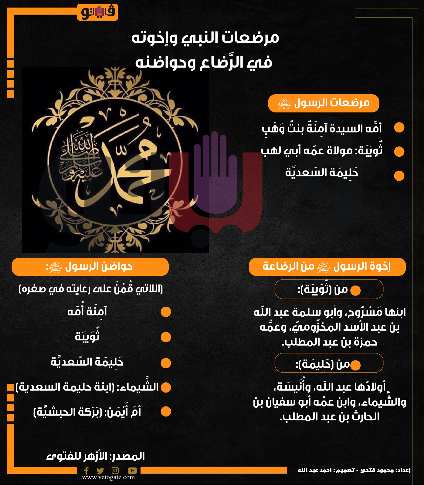 مرضعات النبي وإخوته في الرَّضاع وحواضنه (إنفوجراف) الأحد 08/سبتمبر/2024 - 02:01 م 9/8/2024 2:01:10 PM مرضعات النبي وإِخوته في الرَّضاع وحواضنه محمود فتحى شارك طباعة 18 حجم الخط شارك طباعة