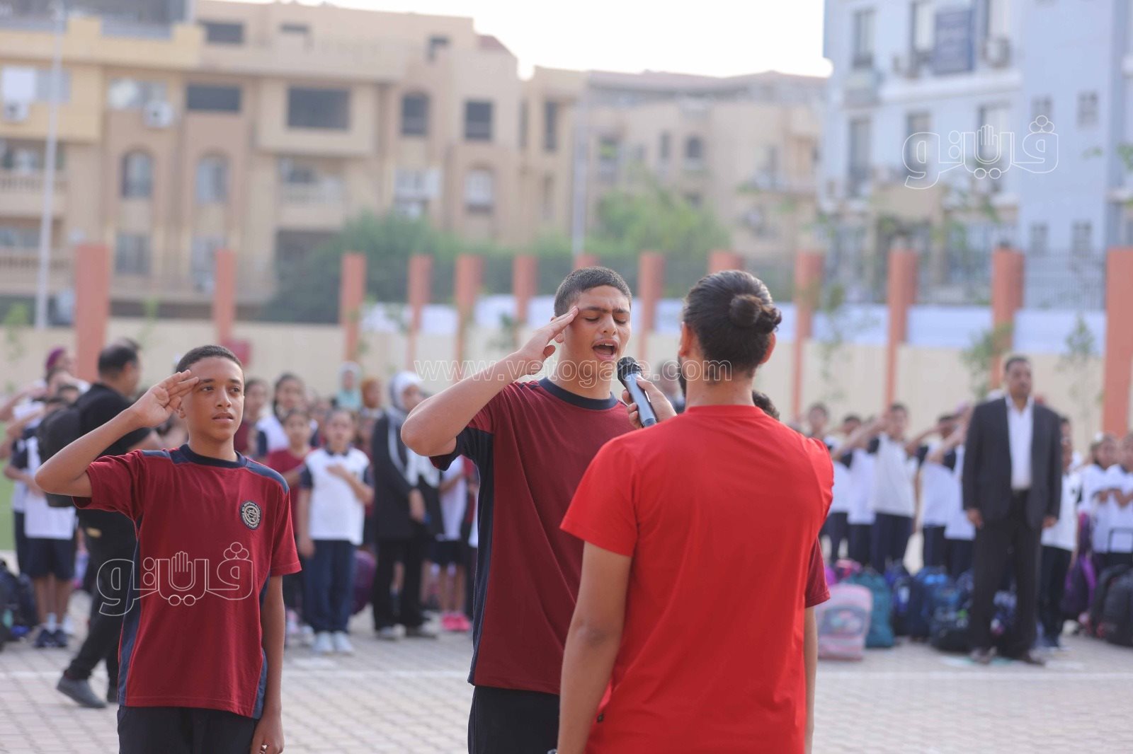 وحرص الطلاب على ارتداء الزى المدرسى لتحقيق الانضباط، والتجمع في أرض الطابور، استعدادًا لأداء النشيد الوطني وتحية العلم.