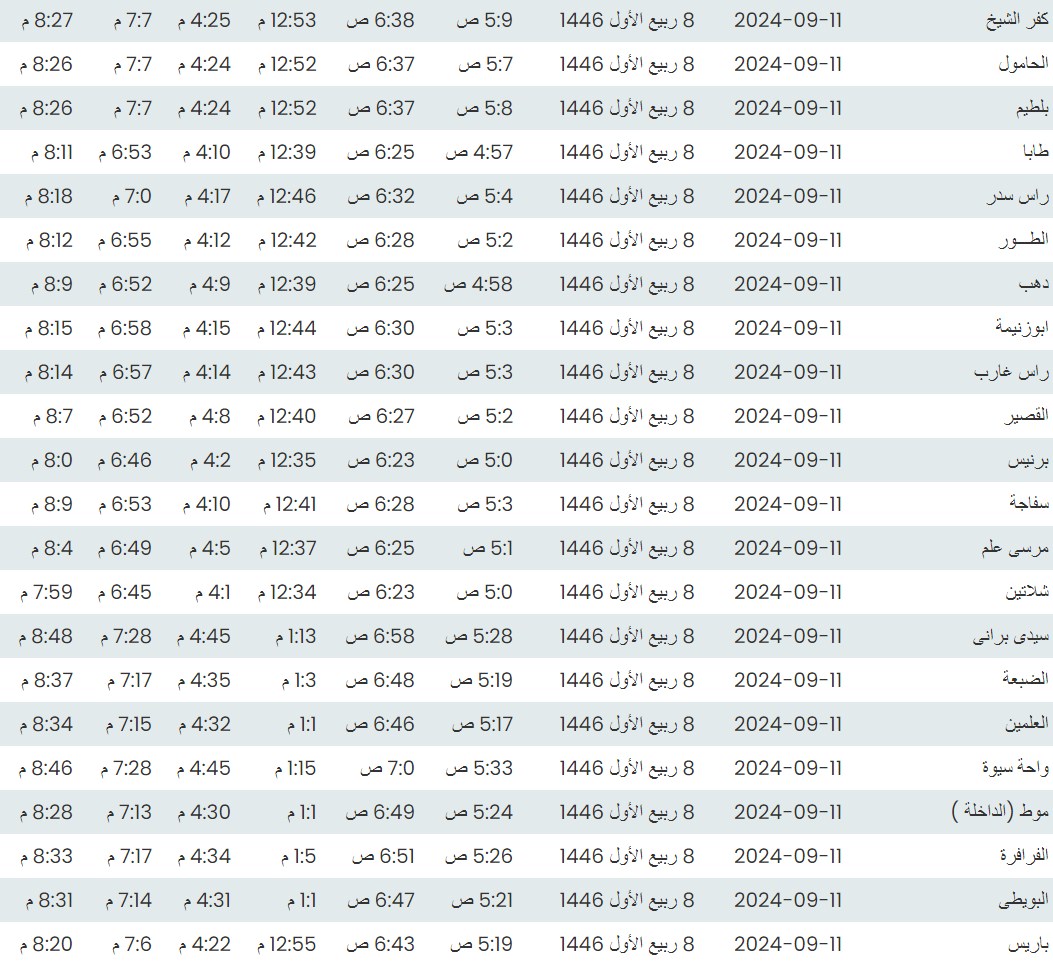 وفيما يلي مواقيت الصلاة، لعدد من مدن ومحافظات الجمهورية من واقع بيانات الهيئة العامة للمساحة