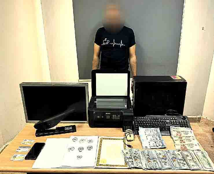 وعقب تقنين الإجراءات تم ضبطه وبحوزته (عدد من الأختام المنسوبة لعدد من الجهات المختلفة "مقلدة"- مستندات وأوراق "مزورة ومعدة للتزوير" – كارنيه منسوب لإحدى الجهات خاص بالمتهم - الأجهزة والأدوات المستخدمة فى نشاطه الإجرامى – مبالغ مالية عملات "محلية - أجنبية" حصيلة نشاطه الإجرامى ).