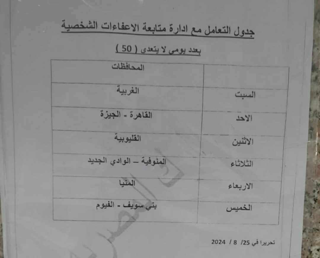 - المحافظات التي لم يتم ذكرها في القائمة تخضع لأقرب محافظة بها متابعة إعفاءات.