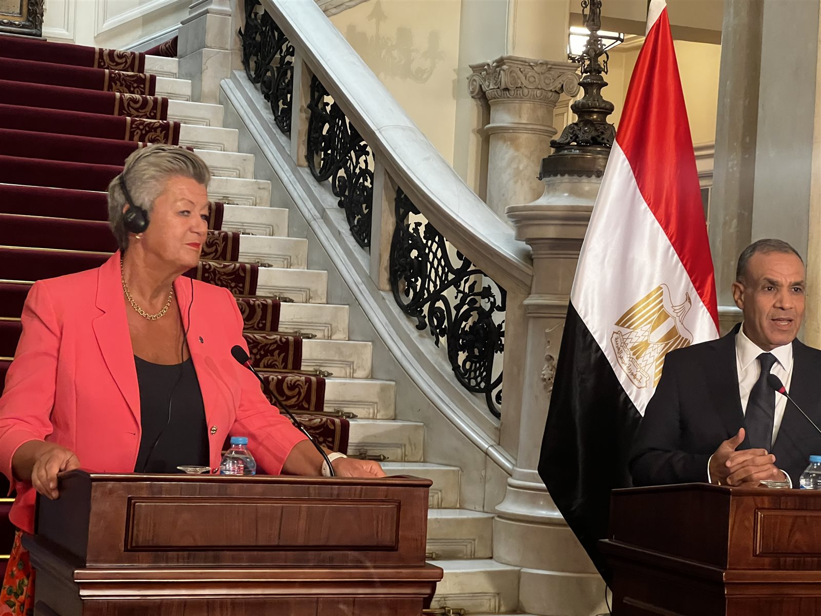 وأكد خلال مؤتمر صحفى مشترك مع يلفا يوهانسون، المفوضة الأوروبية للشؤون الداخلية والهجرة، اليوم بقصر التحرير في القاهرة، أنه لولا مؤسسات الدولة القوية لما أمكن لمصر أن تتحمل تلك الأزمات.