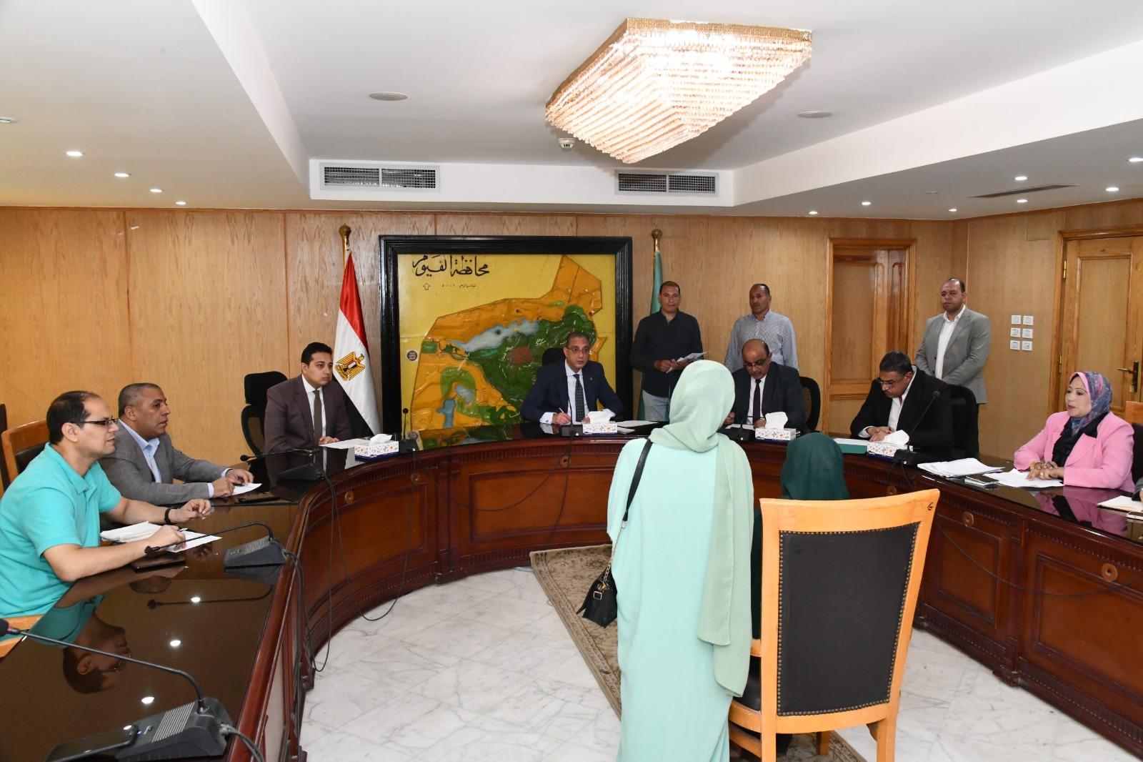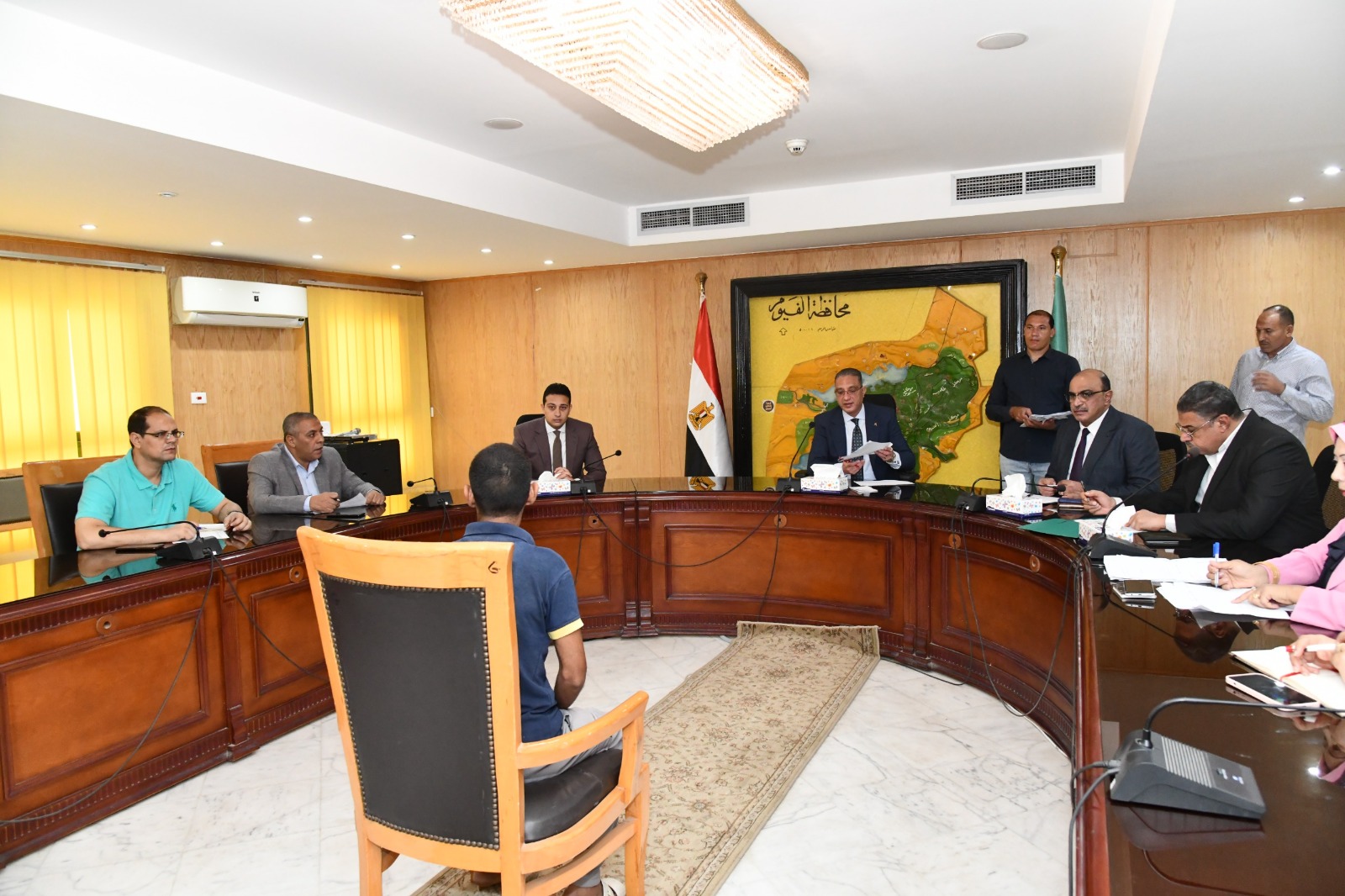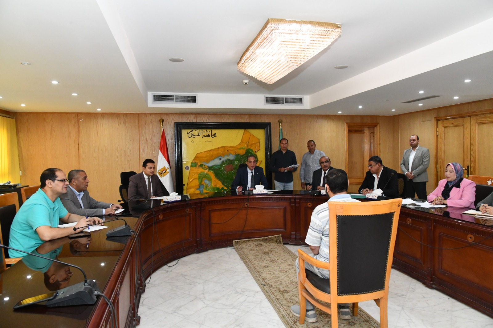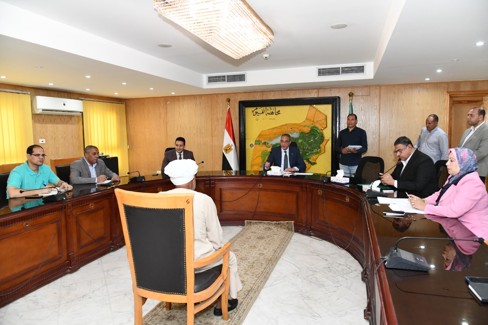 عقد الدكتور أحمد الأنصارى محافظ الفيوم، اللقاء الدوري لخدمة المواطنين، للاستماع لشكواهم ومتطلباتهم بمختلف القطاعات الخدمية، ووجه بضرورة توفير فرص عمل بالقطاع الخاص للشباب الخريجين، وإجراء عدد من التداخلات لتوفير الحماية الاجتماعية لمساعدة الأسر الأولى بالرعاية، وتوفير علاج على نفقة الدولة للمرضى غير القادرين.