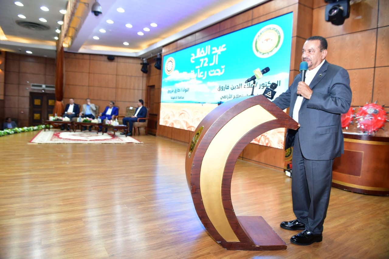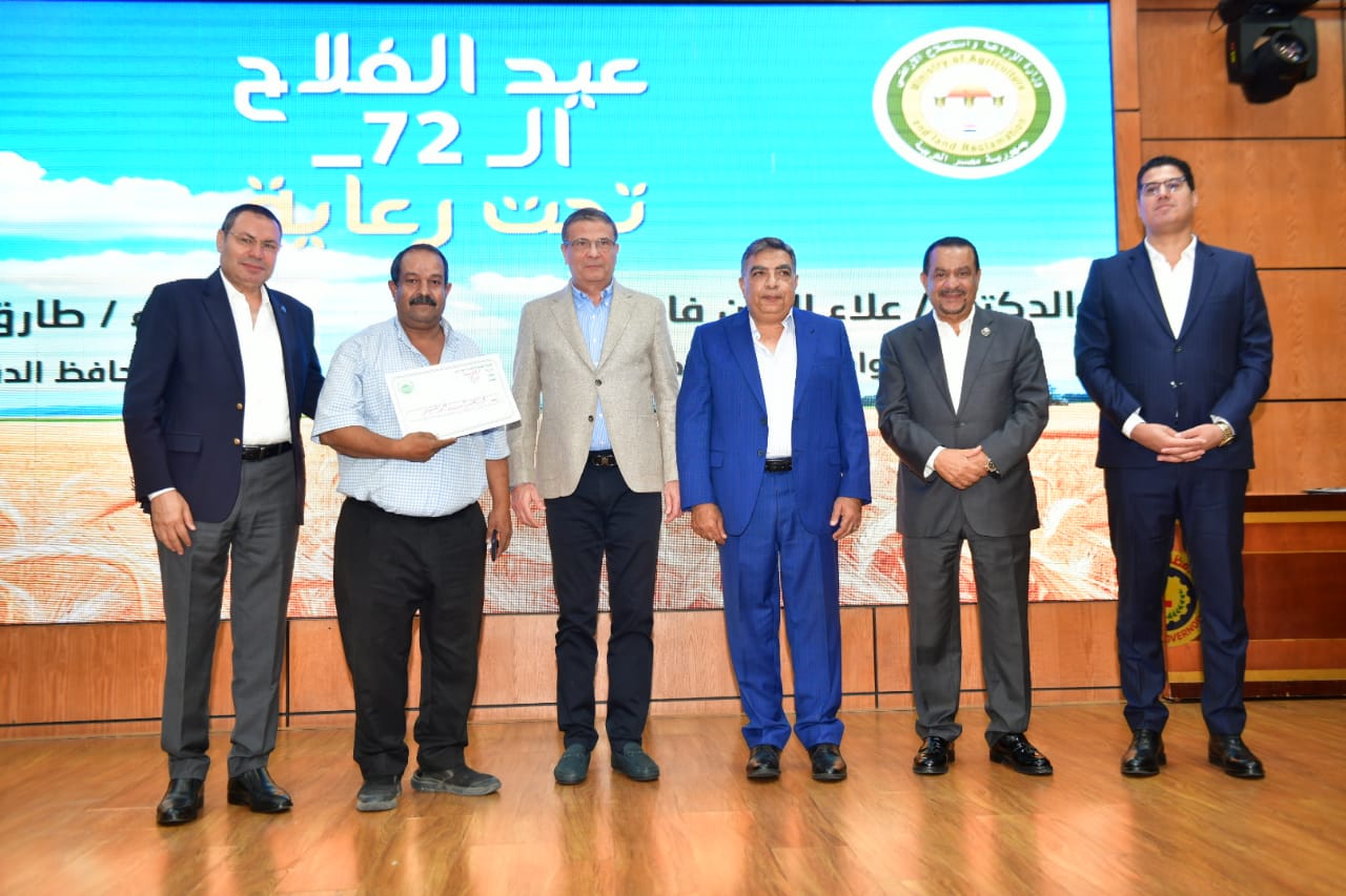 وكان علاء فاروق وزير الزراعة واستصلاح الأراضي، واللواء طارق مرزوق محافظ الدقهلية، واللواء هشام الحصري رئيس لجنة الزراعة بمجلس النواب، والمهندس عبد السلام الجبلي رئيس لجان الزراعة بمجلس الشيوخ، والدكتور أحمد العدل نائب محافظ الدقهلية، شهدوا احتفالية العيد الـ ٧٢ للفلاح المصري، بقاعة الاحتفالات الكبرى بمحافظة الدقهلية.