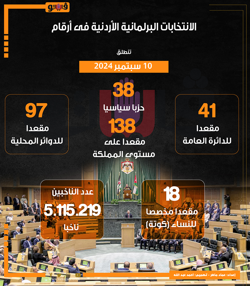 الانتخابات البرلمانية الأردنية فى أرقام (إنفوجراف) الإثنين 09/سبتمبر/2024 - 07:32 م 9/9/2024 7:32:41 PM الانتخابات عماد ماهر شارك طباعة 18 حجم الخط شارك طباعة الانتخابات البرلمانية الأردنية الأردنية الانتخابات