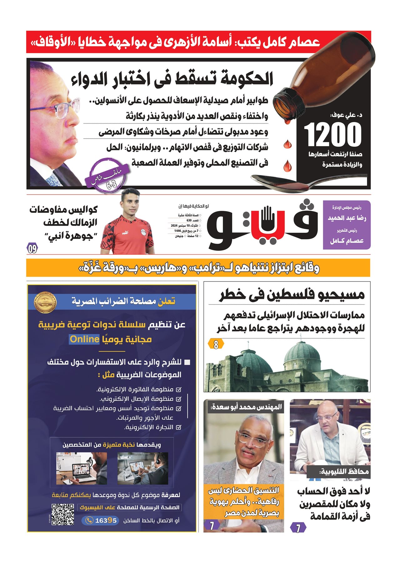 تكشف فيتو في عددها الجديد عن سقوط الحكومة في اختبار توفير عدد من الأدوية الناقصة في السوق مما أدي إلى تفاقم الطوابير أمام صيدلية الإسعاف للحصول على الأنسولين فضلا عن اختفاء ونقص العديد من الأدوية ما ينذر بكارثة.
