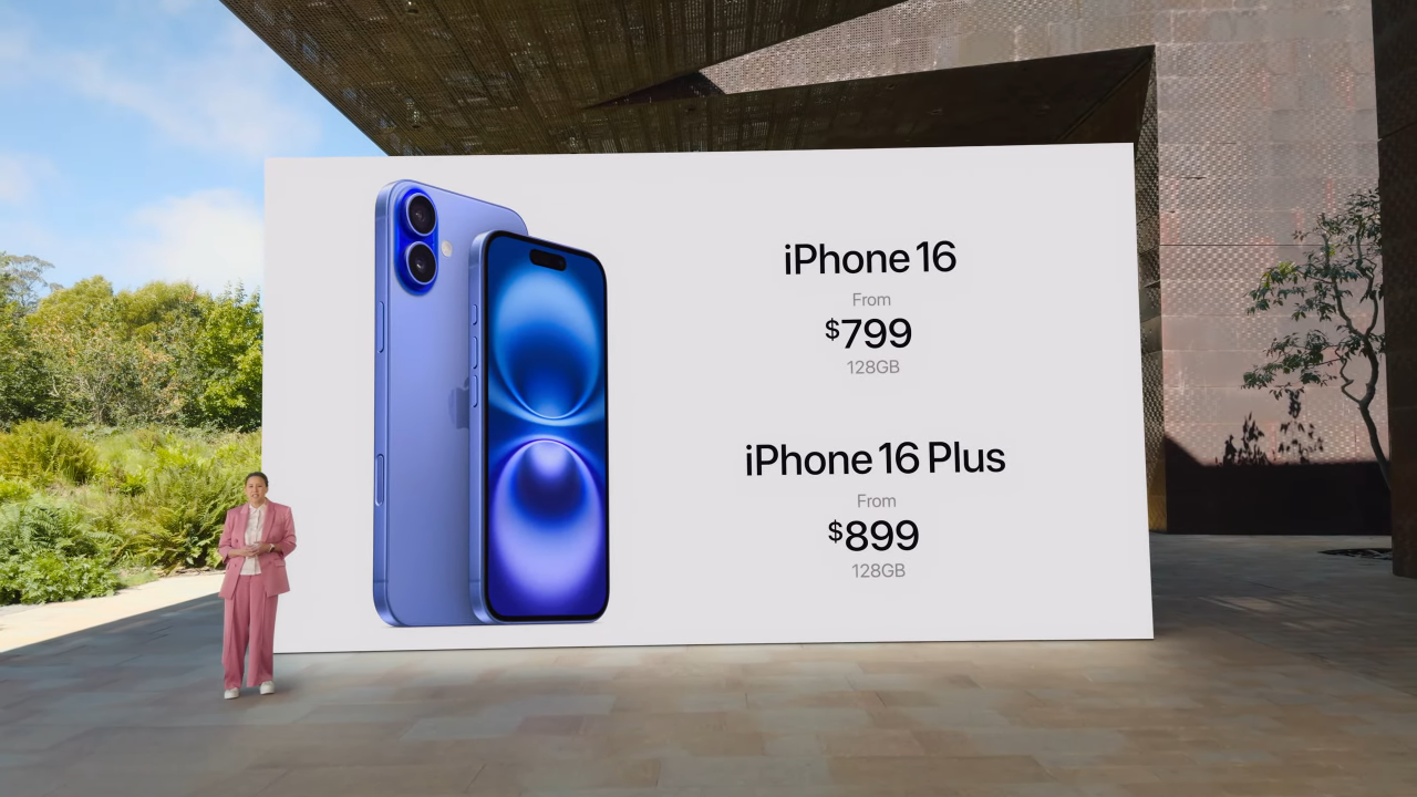 جاء هاتف آيفون iPhone 16 الأساسى بسعر يبدأ من 799 دولارًا مع سعة تخزين 128 جيجابايت، بينما يبدأ سعر ايفون 16 بلس iPhone 16 Plus من 899 دولارًا، فى حين يبدأ سعر آيفون 16 برو من 999 دولارا لسعة تخزين 128جيجا، ويبدأ سعر هاتف آيفون 16 برو ماكس من 1199 دولارا بسعه تخزين 256 جيجا.