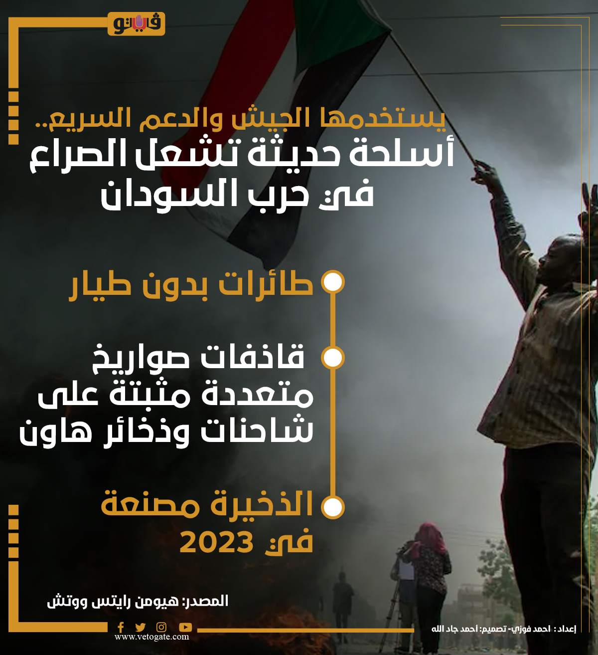 يستخدمها الجيش والدعم السريع.. أسلحة حديثة تشعل الصراع في حرب السودان (إنفوجراف) الثلاثاء 10/سبتمبر/2024 - 01:00 م 9/10/2024 1:00:48 PM أسلحة حديثة في حرب السودان، فيتو احمد فوزي شارك طباعة 18 حجم الخط شارك طباعة السودان الدعم السريع الجيش طائرات بدون طيار أجهزة تشويش على الطائرات صواريخ موجهة مضادة للدبابات قاذفات صورايخ