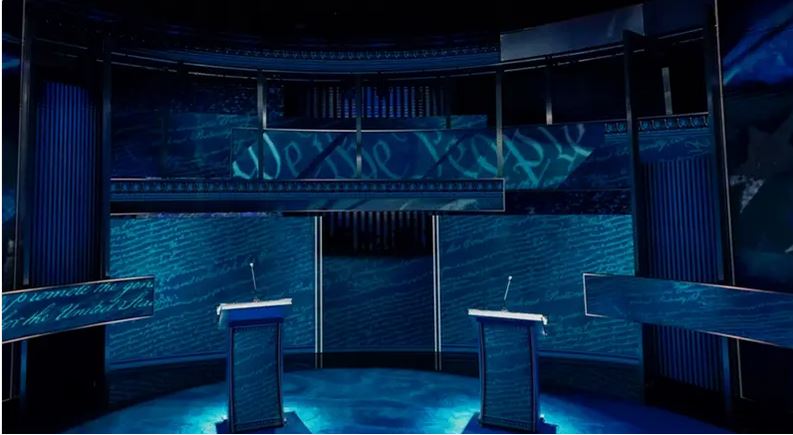 وشاركت القناة الصورة الأولى للمنصة حيث تم عرضها عبر برنامج "WORLD NEWS TONIGHT"، قبل المناظرة المقررة اليوم التي يديرها ديفيد موير ولينسي ديفيس.