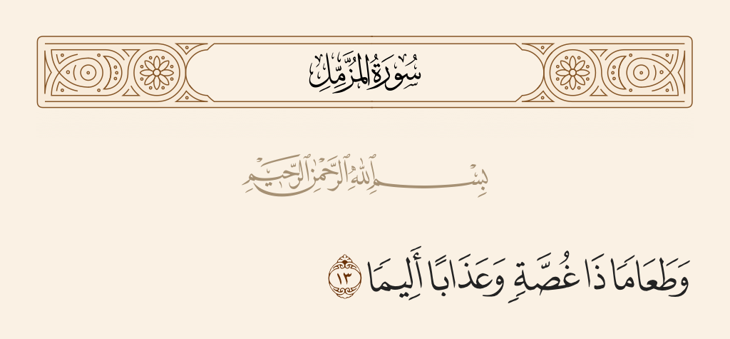 قال تعالى: «وَطَعَامًا ذَا غُصَّةٍ وَعَذَابًا أَلِيمًا».