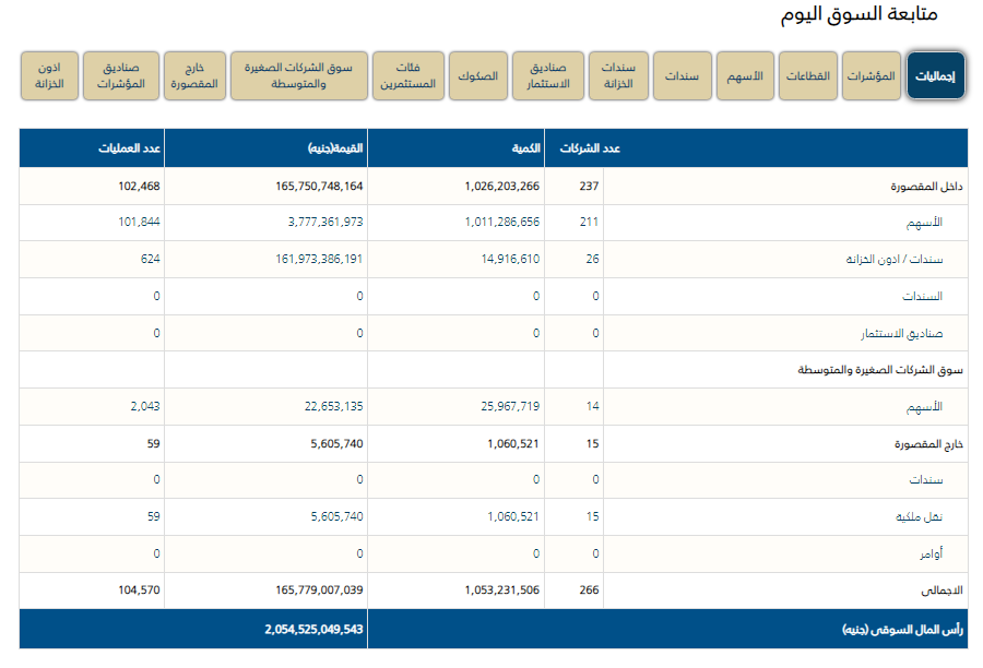 - تراجع مؤشر الشركات الصغيرة والمتوسطة "إيجي إكس 70 متساوي الأوزان" بنسبة 0.96 % عند مستوى 7.071.56 نقطة