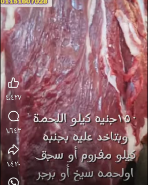 على الرغم من ارتفاع أسعار اللحوم لتتخطى الـ 480 جنيهًا في بعض المناطق؛ انتشرت على مواقع التواصل الاجتماعي خلال الفترة الأخيرة؛ فيديوهات تروج لبيع كيلو اللحوم بسعر 150 جنيهًا في مناطق متفرقة من القاهرة والجيزة.