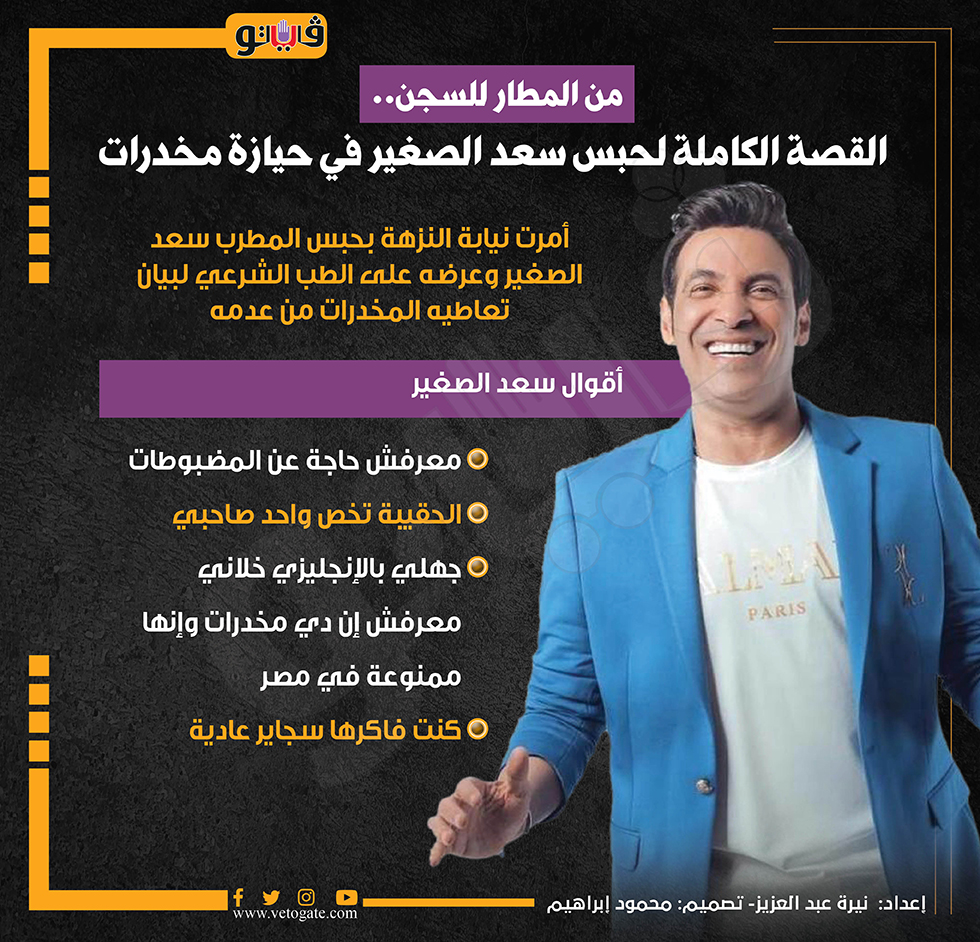 من المطار للسجن.. القصة الكاملة لحبس سعد الصغير في حيازة مخدرات (إنفوجراف) الأربعاء 11/سبتمبر/2024 - 09:37 ص 9/11/2024 9:37:11 AM سعد الصغير؛ فيتو نيرة عبد العزيز شارك طباعة 18 حجم الخط شارك طباعة نيابة النزهة المطرب سعد الصغير سعد الصغير مطار القاهرة