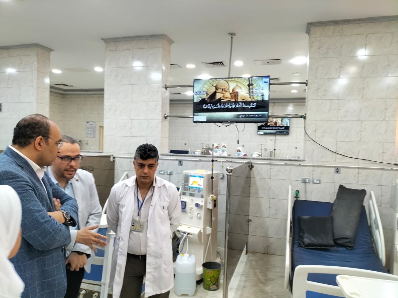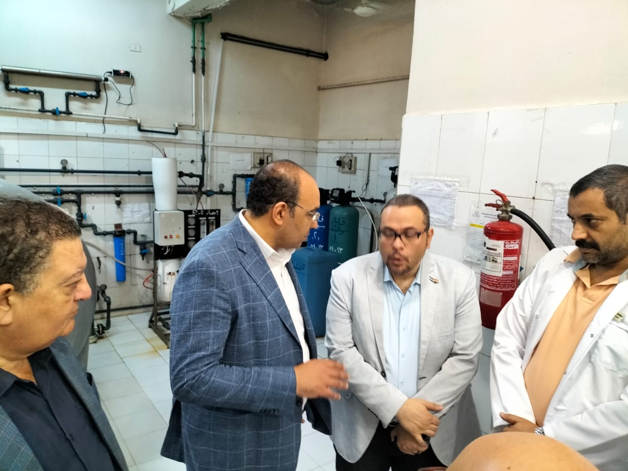 واطلع "مدكور" على آلية عمل وحدة الكلى بالدور الثالث، وكذلك غرفة خدمة غسيل الكلى للطوارئ، علاوة على طرق التعقيم المتبعة وقسم معالجة المياه.