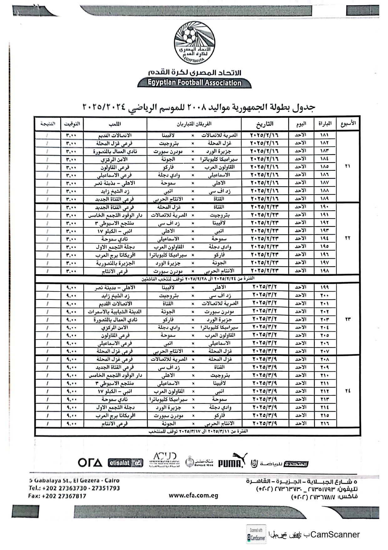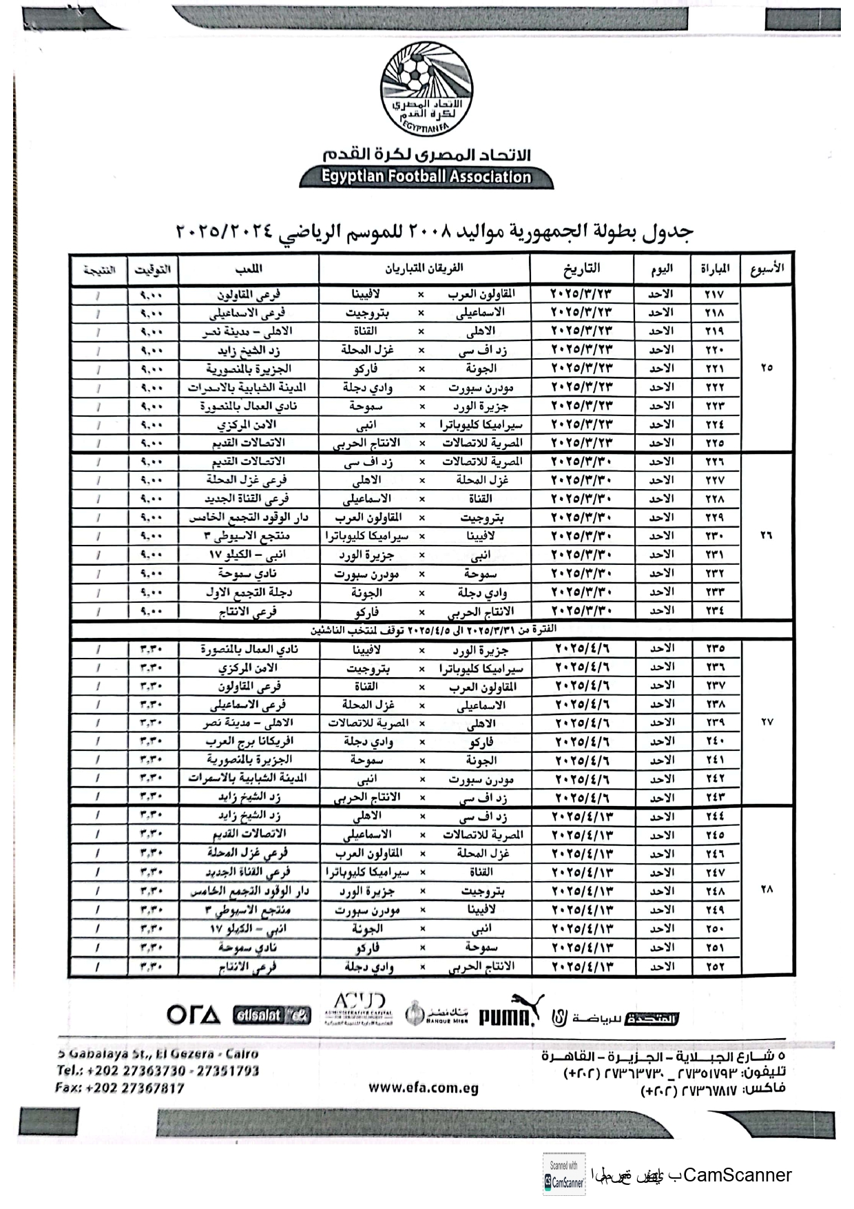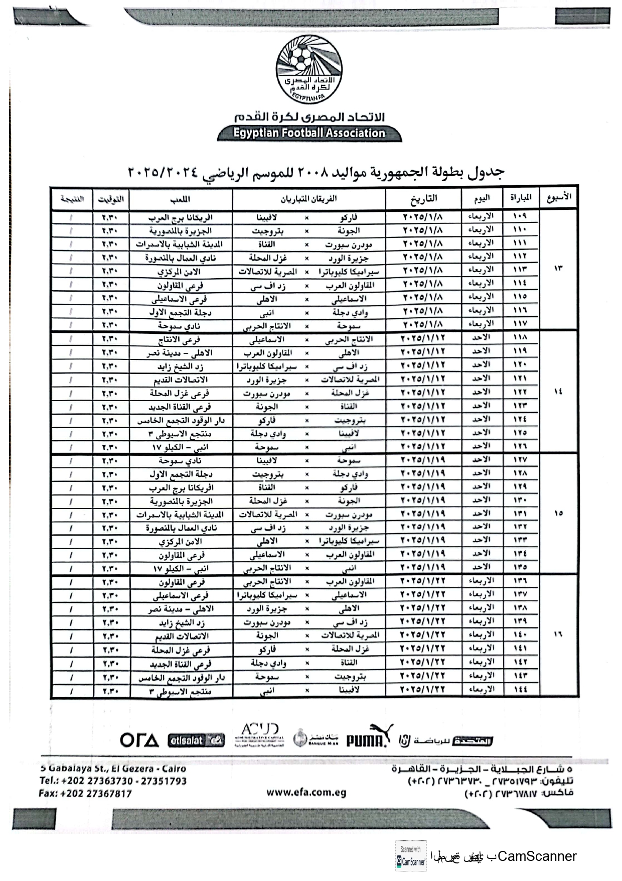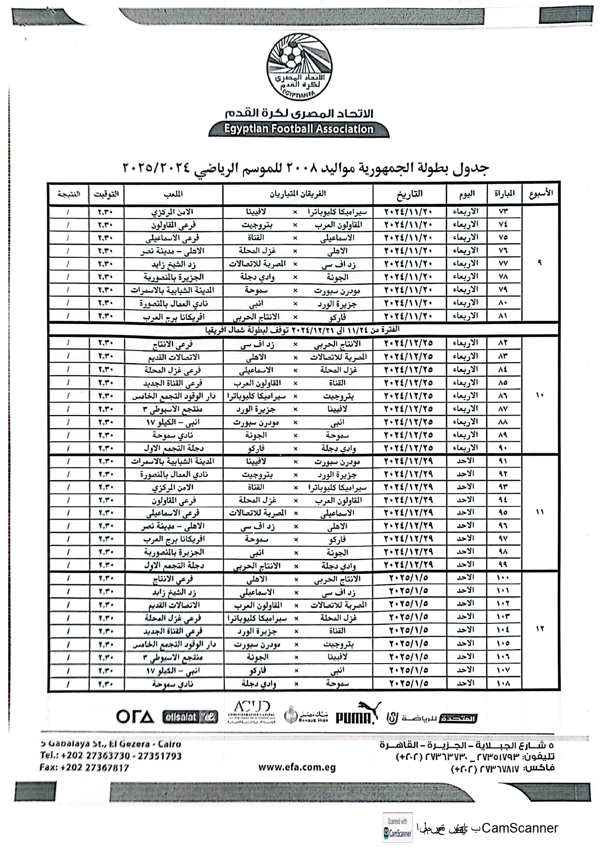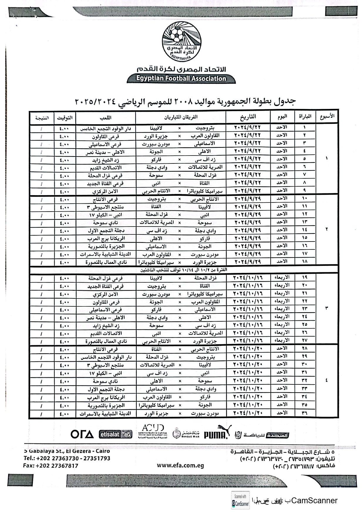 دوري الجمهورية للناشئين، كشف اتحاد الكرة عن جدول ومواعيد مباريات دوري الجمهورية للناشئين مواليد 2008 لأندية القسم الأول موسم 2024-2025.