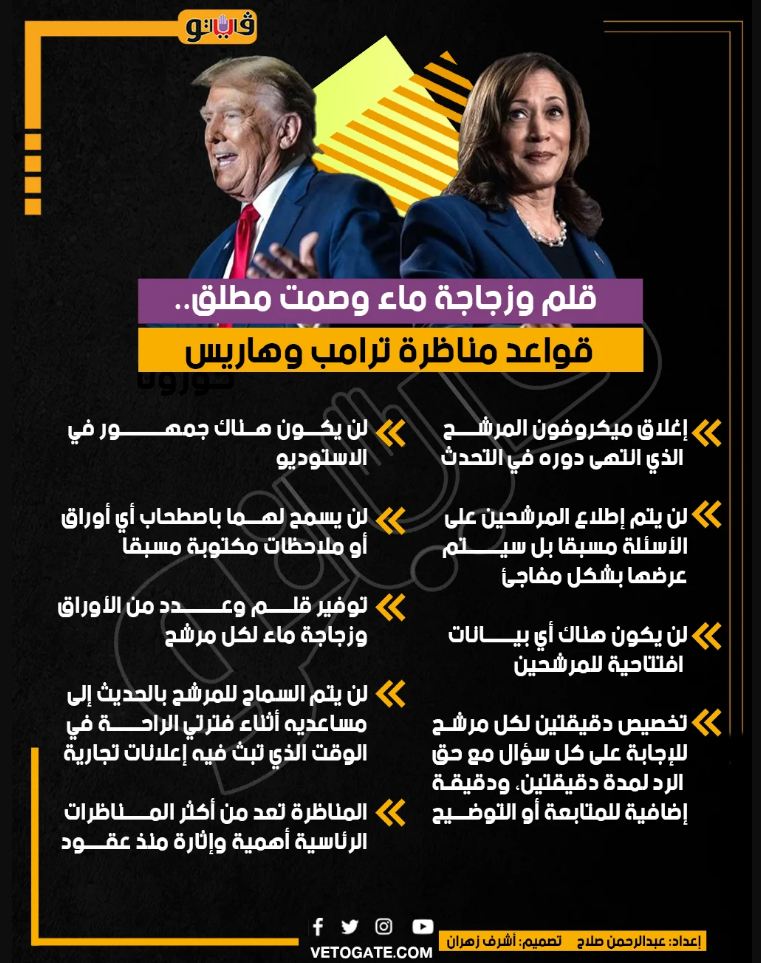 وحسب شبكة " سي إن إن"، تمكن مراسل صحفي كان متواجدا قرب المنصة في فيلادلفيا خلال مناظرة ترامب وهاريس، من سماع بعض ما لم يسمعه الجمهور من كواليس ما دار بين المتنافسين أثناء كتم الصوت.