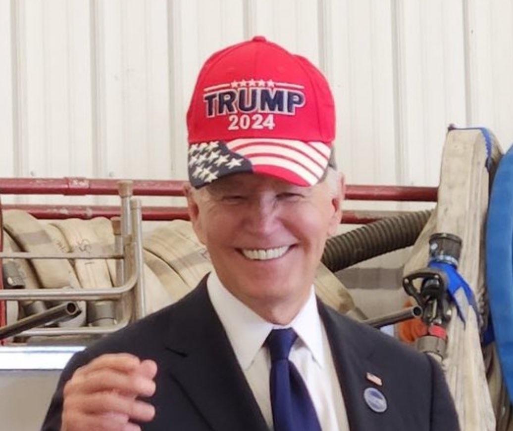 سقطات الرئيس جو بايدن، لا تنتهي، وآخرها مشهد قد يبدو لك خياليًّا حيث ارتدى بايدن قبعة كتب عليها “ترامب 2024”.