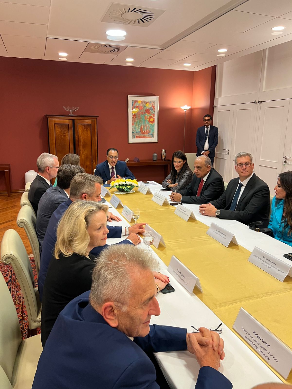وحضر اجتماع رئيس الوزراء مع الشركات الألمانية كل من: الدكتورة رانيا المشّاط، وزيرة التخطيط والتنمية الاقتصادية والتعاون الدولي، والمهندس محمود عصمت، وزير الكهرباء والطاقة المتجددة، والمهندس كريم بدوي، وزير البترول والثروة المعدنية، والسفير خالد جلال، سفير مصر في ألمانيا، وحسام هيبة، الرئيس التنفيذي للهيئة العامة للاستثمار والمناطق الحرة.