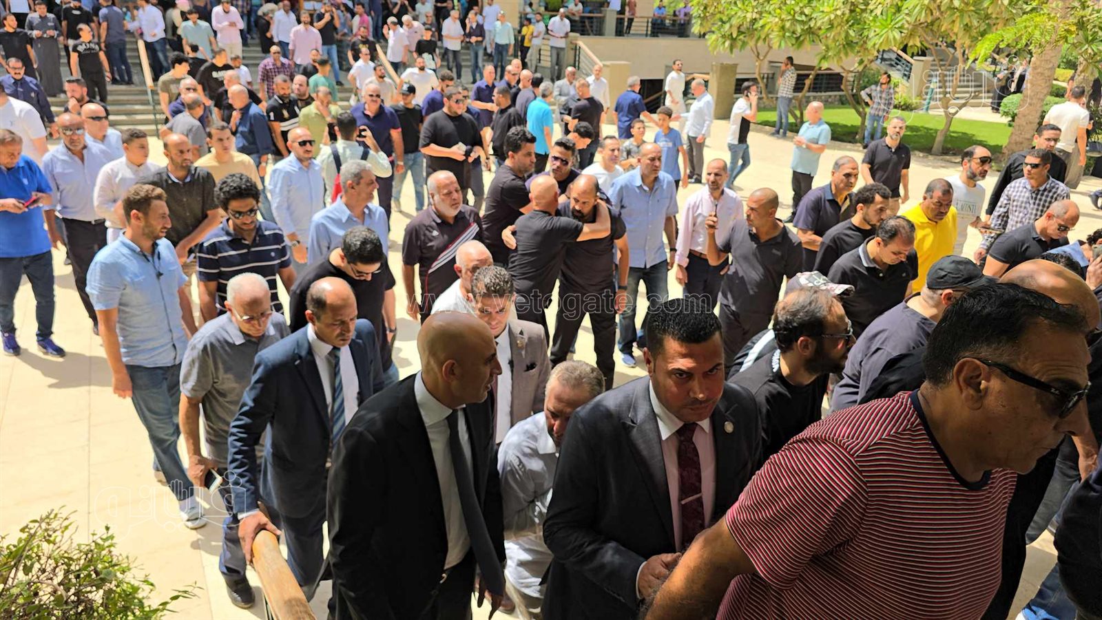 الحزن والبكاء سيطر على المشهد أثناء صلاة الجنازة وتشييع الجثمان خاصة بين الرياضيين الذين يعتبرون إيهاب جلال أبيهم الروحي.