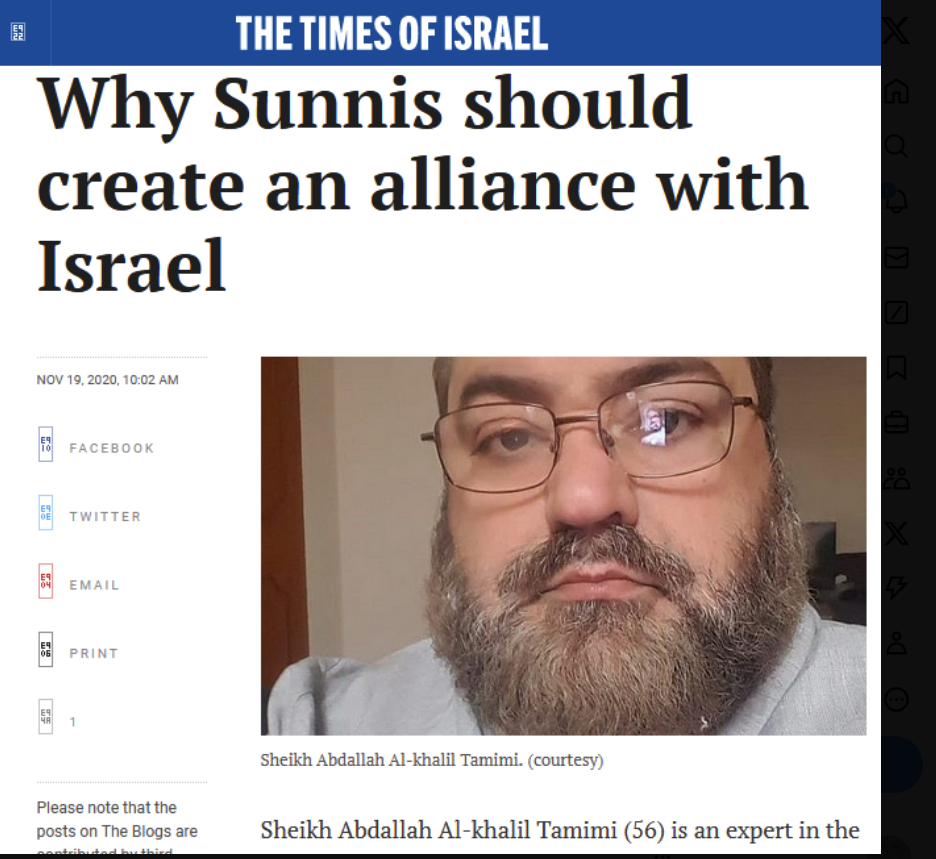 البلوجر عبد الواحد أبو حسين قال: "الشيخ المعارض عبد الله الخليل التميمي الحمصي بالعربية يقول:"اللهم انصر غزة وادلب" ثم يطعن بأبو عبيدة ومحمد ضيف وبالانجليزية يقول"لماذا يجب على السنة التحالف مع إسرائيل" هذه بكائيات أهل الغُمة، ولا ينتمون للسنة يريدون إسقاط محور المقاومة ونشر الفتنة داخله"