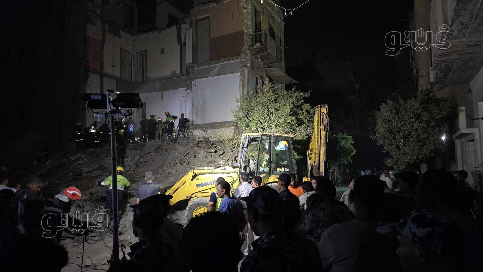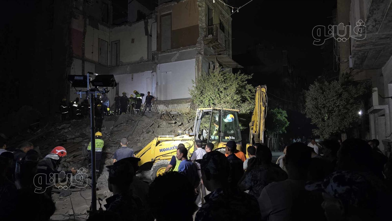الدفع بمعدات ثقيلة لرفع أنقاض العقار المنهار في شبرا مصر(صور)