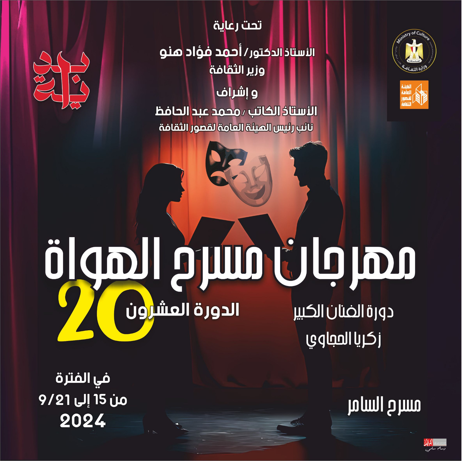 تنطلق في السادسة والنصف من مساء الأحد المقبل، على مسرح السامر بالعجوزة، فعاليات الدورة العشرين لمهرجان مسرح الهواة، "دورة الفنان الراحل زكريا الحجاوي"، برعاية الدكتور أحمد فؤاد هنو وزير الثقافة، وتنظمها الهيئة العامة لقصور الثقافة في الفترة من 15 إلى 21 سبتمبر الحالي.