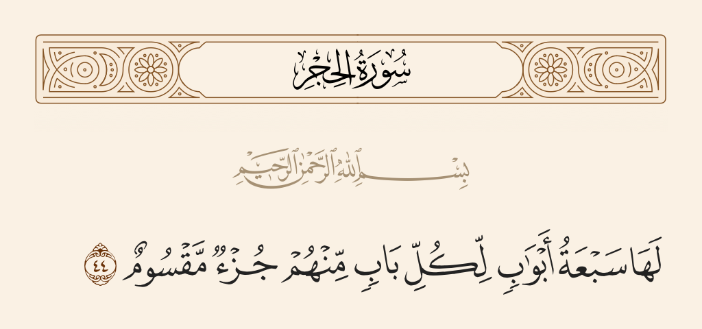 قال تعالى: «لَهَا سَبْعَةُ أَبْوَابٍ لِكُلِّ بَابٍ مِنْهُمْ جُزْءٌ مَقْسُومٌ».