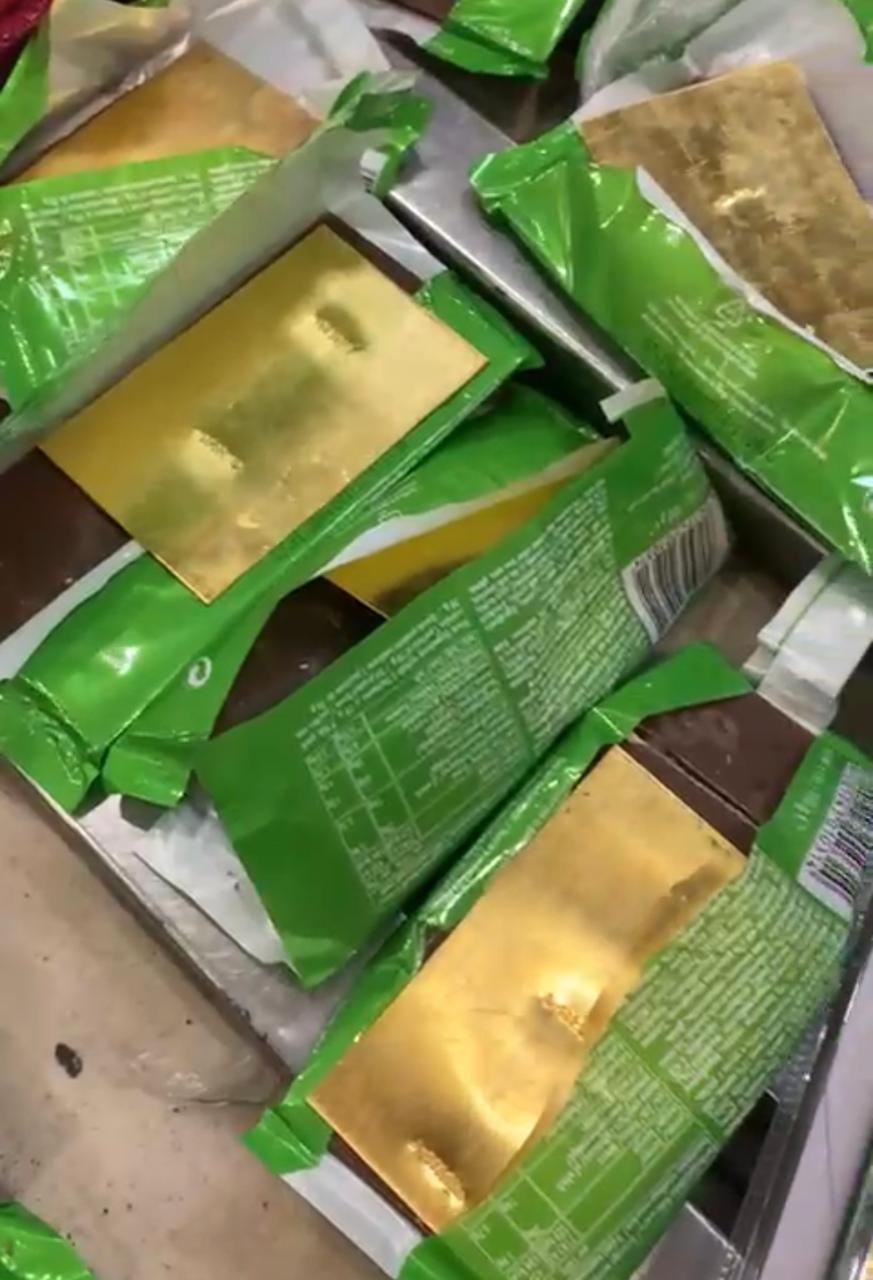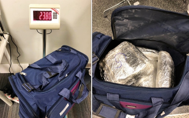 لكن رجال الأمن اكتشفوا تهريبه ممنوعات أخرى، ورشوا الجبس بمادة تتحول إلى أزرق بمجرد ملامسة مادة الكوكايين، وتبين أنه وزن الجبس كان نحو 5 كيلوغرامات من الكوكايين.
