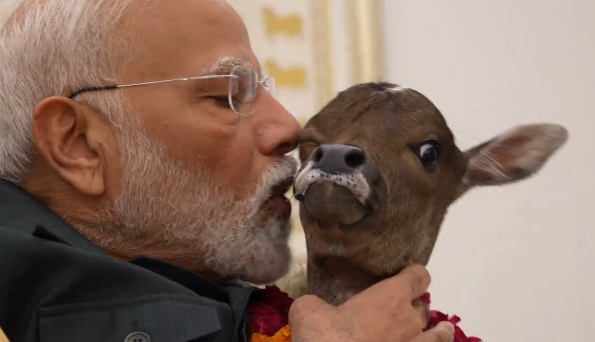 في سابقة هي الأولى من نوعها، استقبل رئيس وزراء الهند ناريندرا مودي المولود الجديد للبقرة المقدسة لديه، في مقر رئاسة الوزراء، وأقام له الطقوس الخاصة بالاستقبال، وألبسه ثوبًا جديدًا وطوقًا من الورد، كما اعتبره جزءًا من عائلته، وأخذ يقبله.