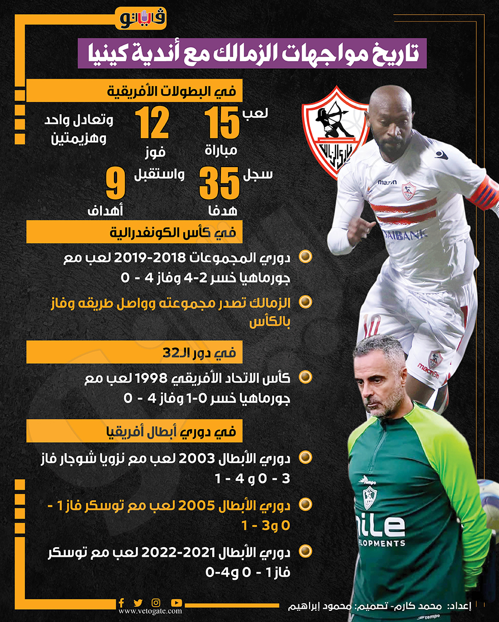 تاريخ مواجهات الزمالك مع أندية كينيا (إنفوجراف) السبت 14/سبتمبر/2024 - 01:22 م 9/14/2024 1:22:03 PM فريق الزمالك، فيتو محمد كارم شارك طباعة 18 حجم الخط شارك طباعة في البطولات الأفريقية - في كأس الكونفدرالية الزمالك
