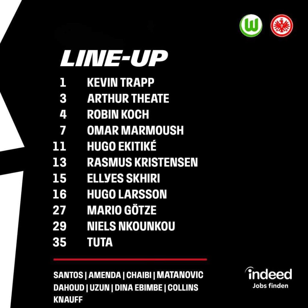 أعلن الجهاز الفني لفريق اينتراخت فرانكفورت الألماني تشكيل الفريق، استعدادا لمواجهة فولفسبورج ضمن منافسات الجولة الثالثة من الدوري الألماني.