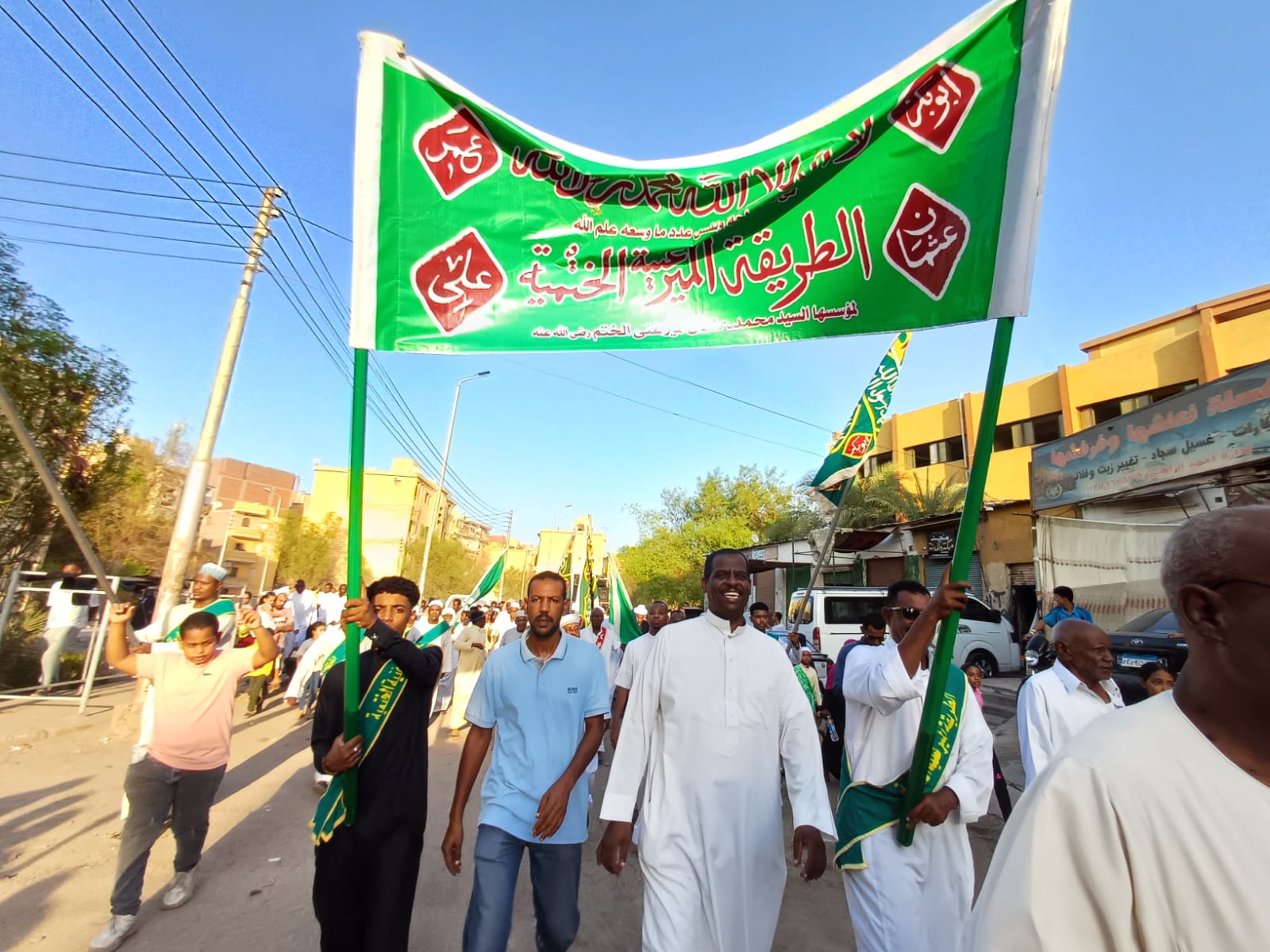 وانطلقت المسيرة من مقر الطريقة الميرغنية بمنطقة الشيخ هارون بمدينة أسوان، وسارت بطريق السيل الرئيسى مرورا بمستشفى أسوان الجامعى وإدارة المرور وصولًا إلى كلية الدراسات الإسلامية ثم العودة مرة أخرى إلى مقر الطريقة.