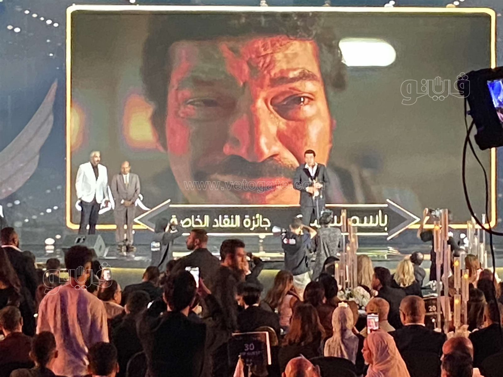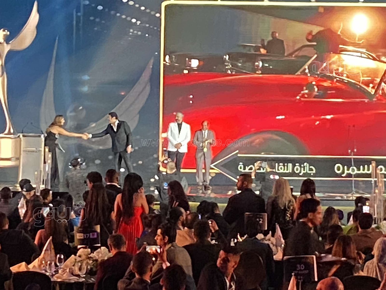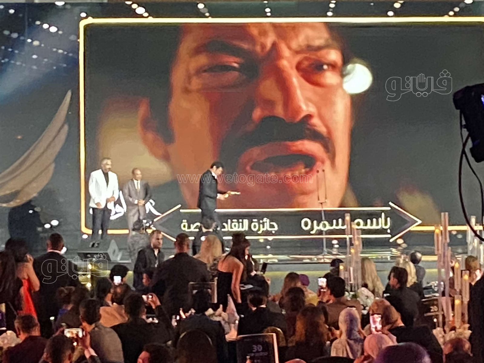 وأهدى الفنان أحمد سعد جائزته إلى محمد رمضان وقال: "بعد التقديمة العظيمة دي أنا بهدي الجائزة بتاعتي لمحمد رمضان".