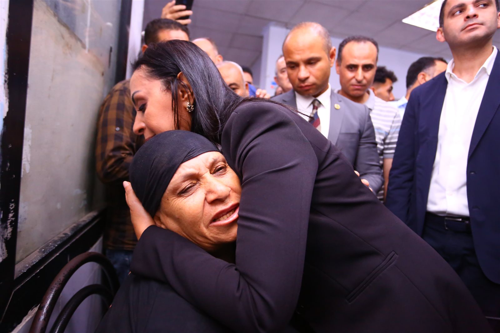 وزيرة التضامن تعزي والدة ضحايا قطار الزقازيق وترافقها لإنهاء إجراءات تصاريح الدفن (صور)