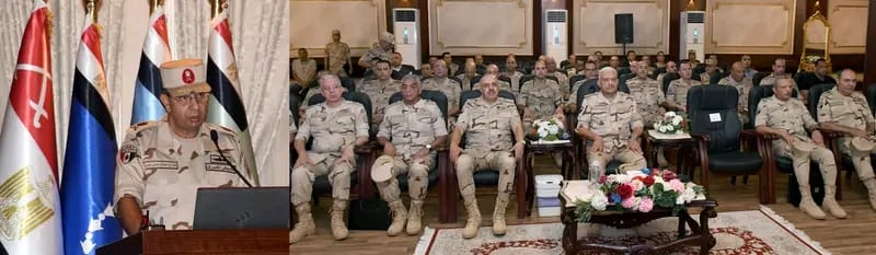 كما وجه إلى حرص القيادة العامة للقوات المسلحة على تعظيم إمكانياتها وقدراتها بإنشاء قواعد عسكرية متكاملة على كافة الإتجاهات الإستراتيجية للدولة لتتضمن قوات برية وتجميعًا قتاليًا يشتمل على موانئ بحرية وقواعد جوية وإمدادها بأحدث نظم التسليح العالمية لتكون مرتكزًا لتنفيذ أى مهام توكل إليها بكفاءة وإقتدار خاصة فى ظل التحديات التى تواجهها الدولة المصرية.