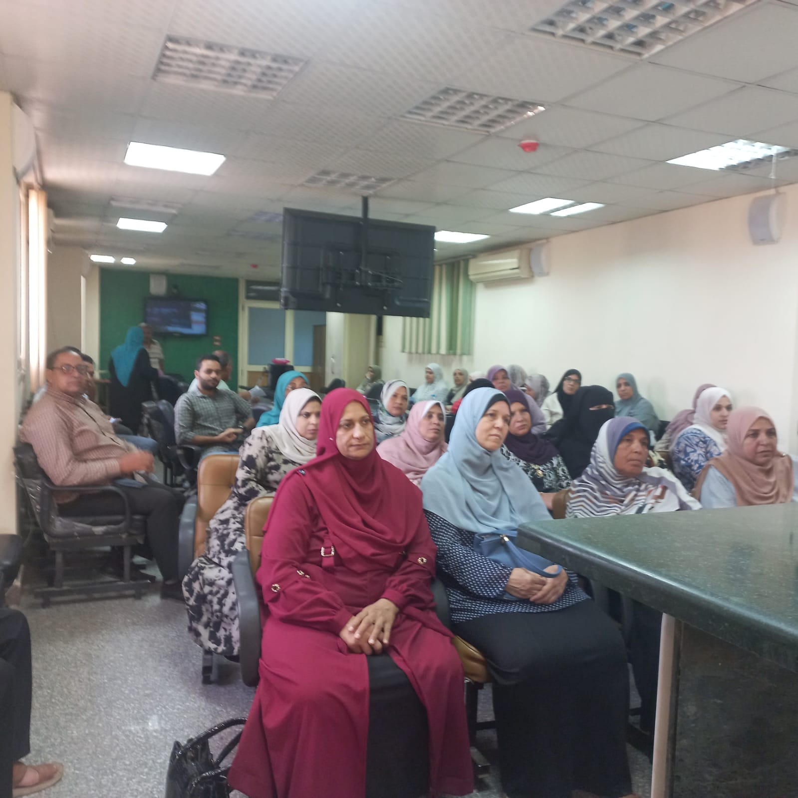 كما قامت حنان محمود مسئول تمريض مكافحة العدوى بالفرع بشرح أساليب وإجراءات مكافحة العدوى اثناء فحص الطلاب وذلك بقاعة الاجتماعات بفرع التأمين الصحى بالشرقية.