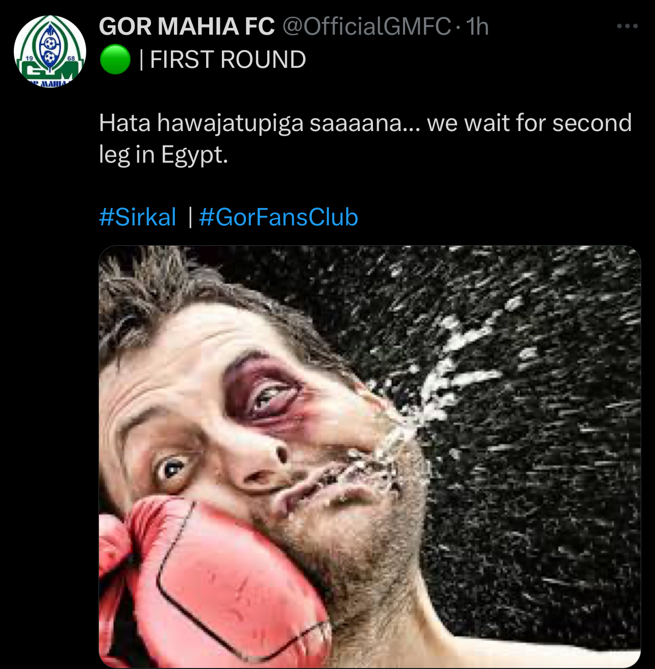 وعلق حساب فريق جورماهيا الكيني علي حساب التواصل الاجتماعي “ اكس “ علي مواجهة الأهلي بنشر صور لملاكم أثناء تلقيه لكمة وكتبت عليها لم يضربونا كثيرا وننتظر مباراة العودة في مصر.