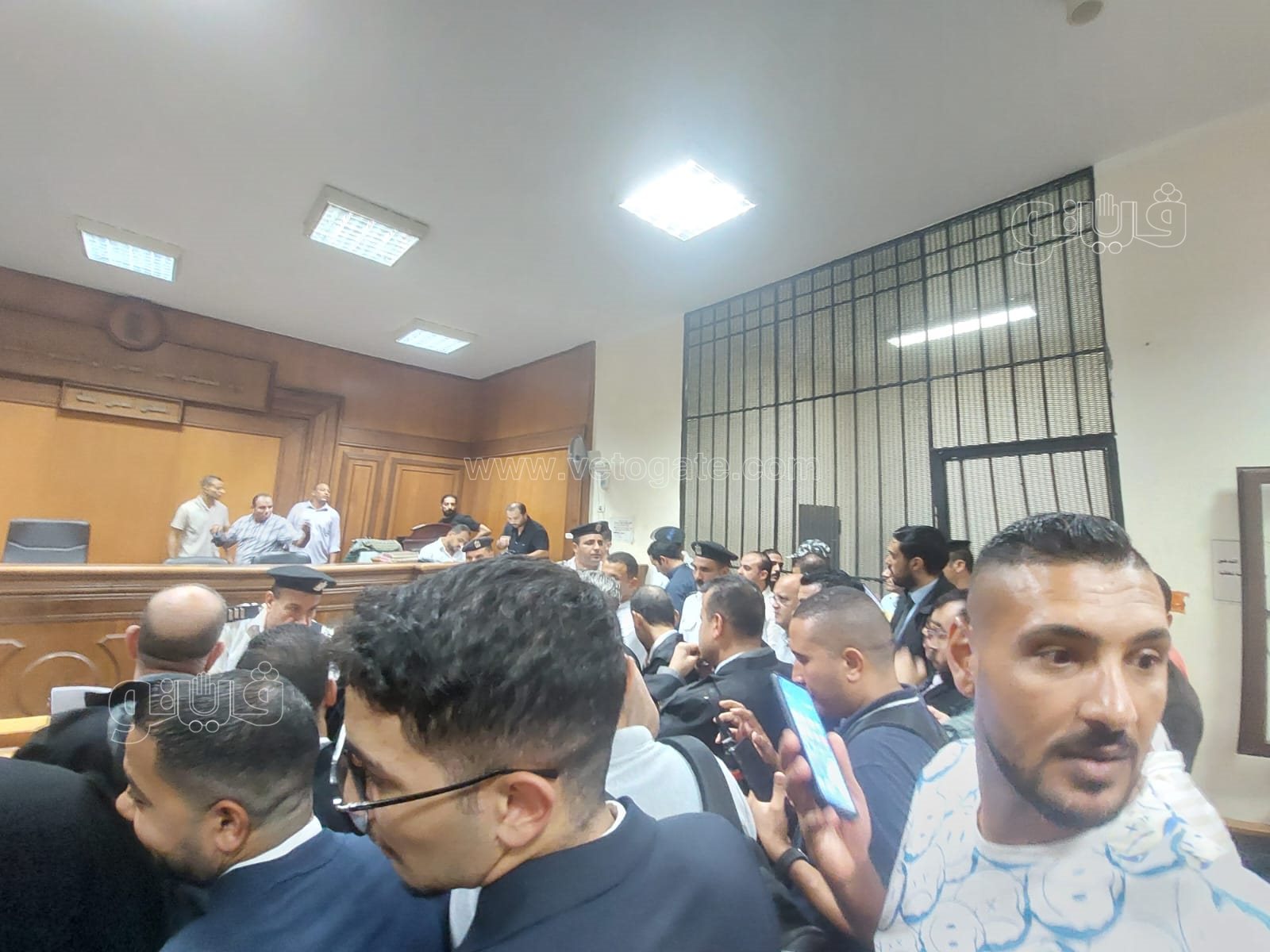 لحظة دخول اللاعب أحمد فتوح إلى قفص الاتهام وبدء جلسة محاكمته بجنايات مطروح (صور)