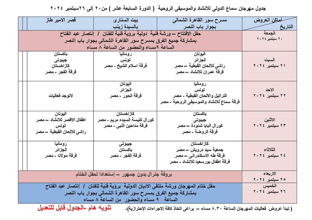 جدول حفلات الدورة 17 لمهرجان سماع الدولي للإنشاد والموسيقى الروحية