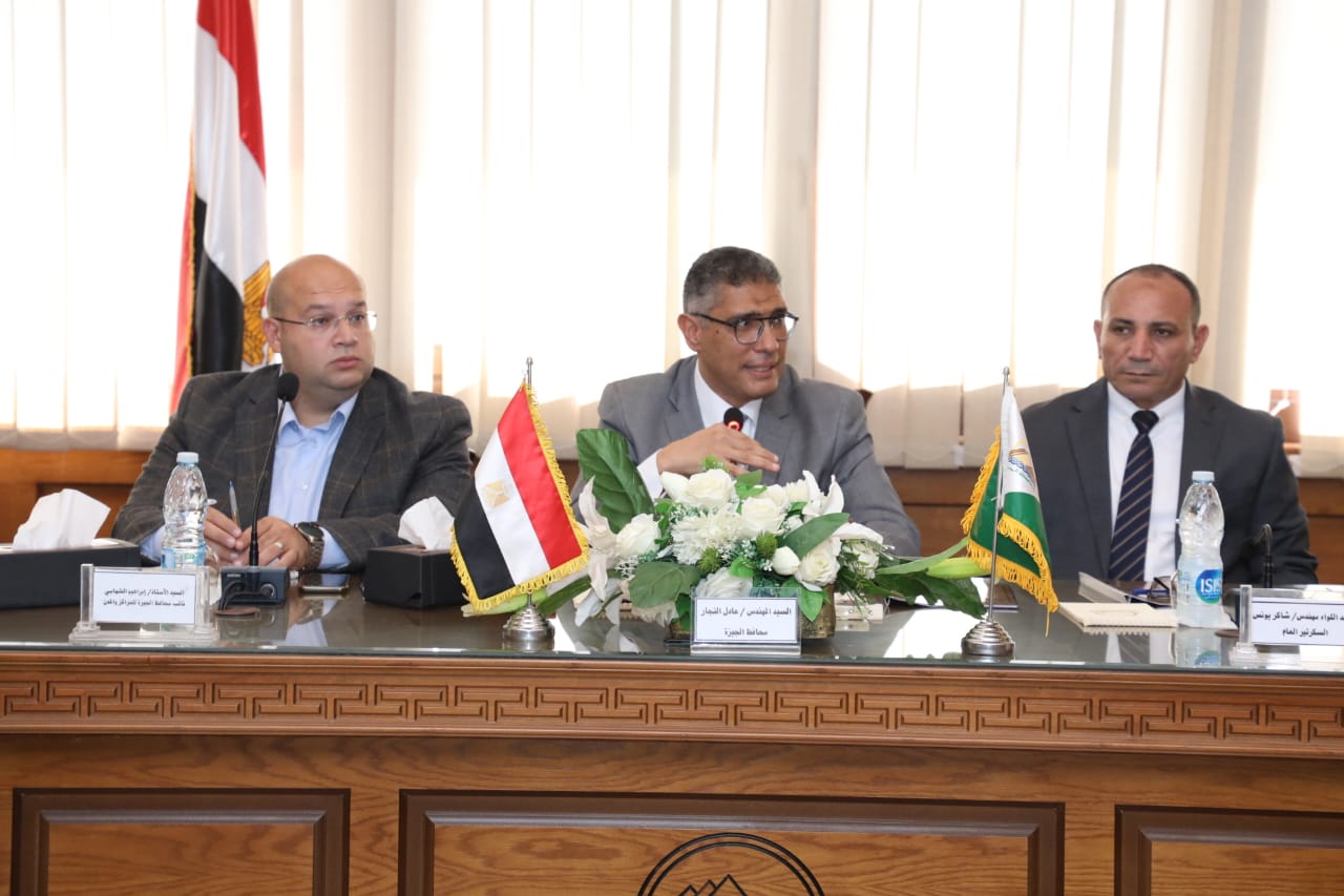 كما ناقش المحافظ مع الحضور سبل تعزيز خدمات مياه الشرب والصرف الصحى بالحوامدية والبدرشين وذلك من خلال بحث معوقات الإنتهاء من توصيل الوصلات المنزلية بقرى الشيخ عتمان وأم خنان وموقف تشغيل محطة مياه الحوامدية.