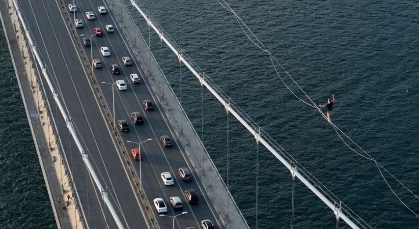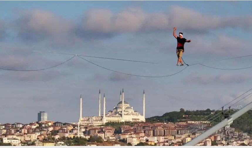 لأول مرة، مغامر يعبر من آسيا إلى أوروبا سيرا على حبل (فيديو)